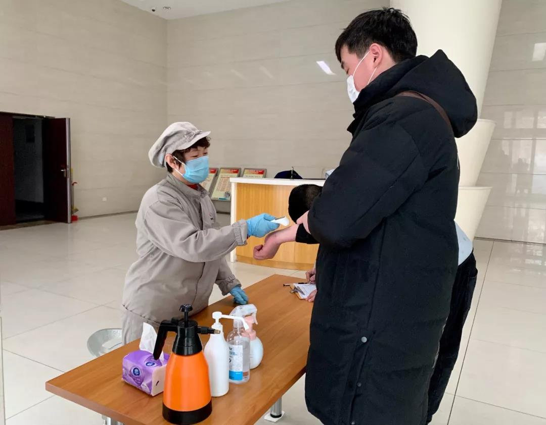 ▲石家庄首页认真履行疫情防控举措,做到“内防无疫情,外放无扩散”,打造员工生产生活“安全岛”。图为2月14日208车间前厅员工在严格筛查上岗员工健康状况。