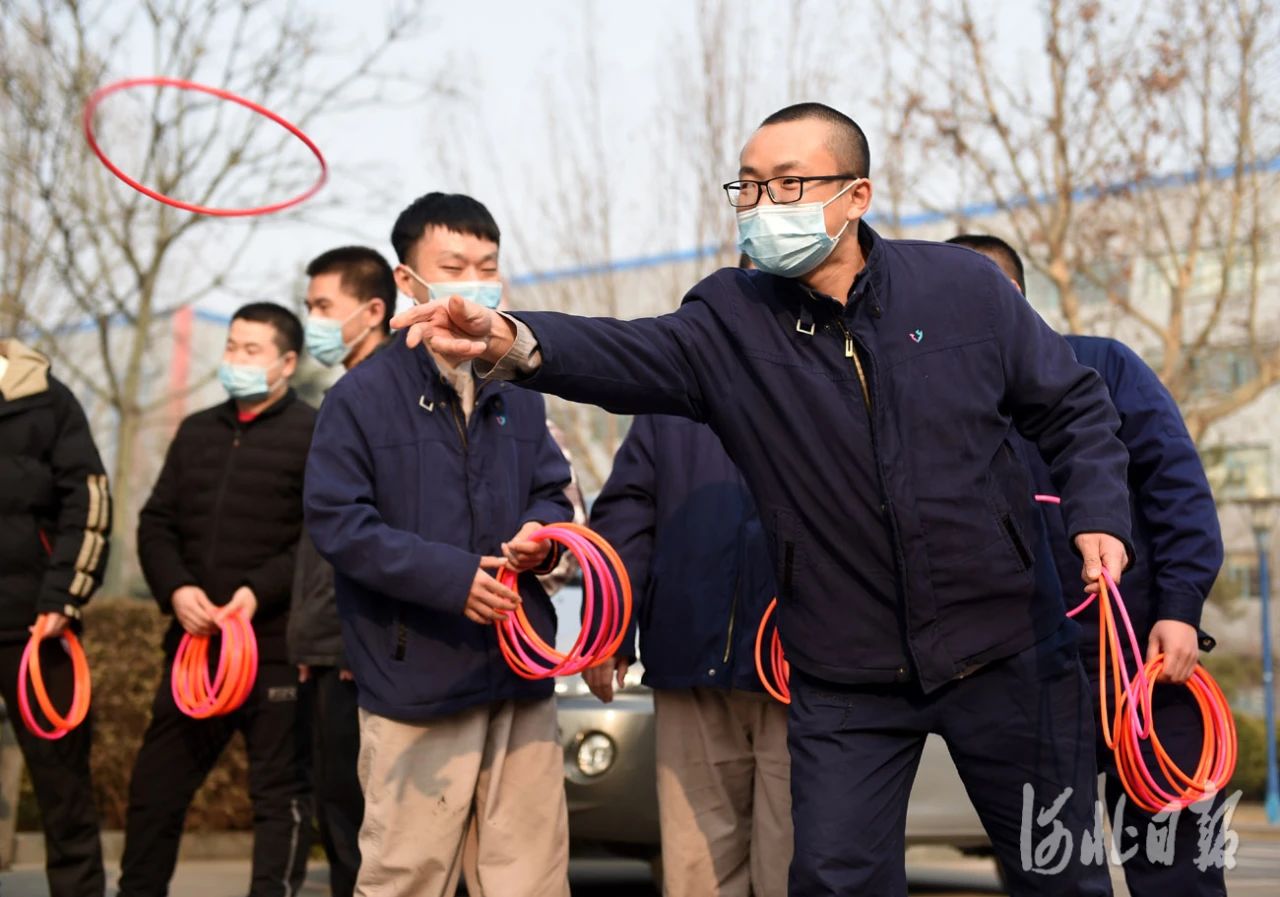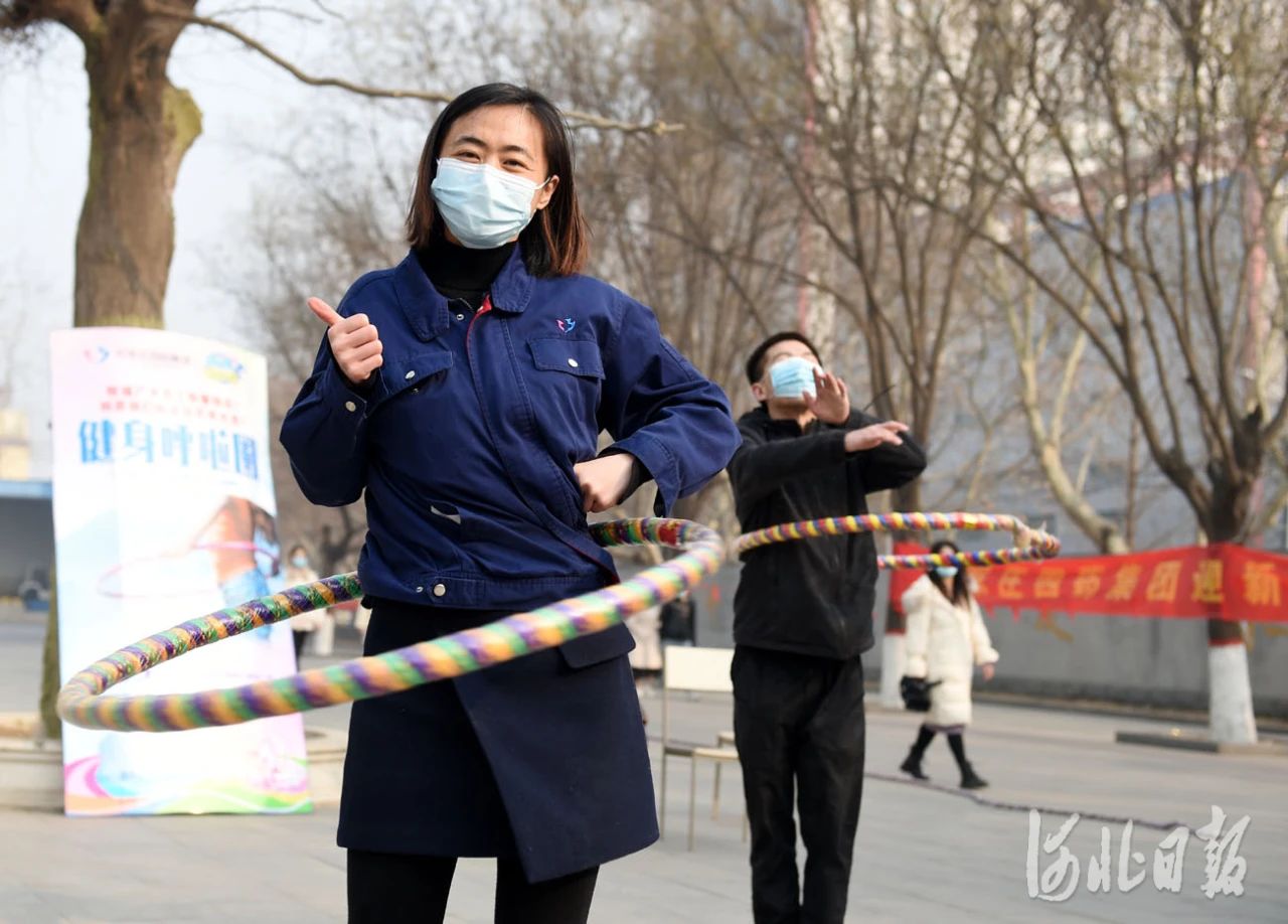 2021年2月12日,正月初一,河北省石家庄首页有限公司留石就地过年职工在参加呼啦圈比赛。河北日报记者 赵永辉摄