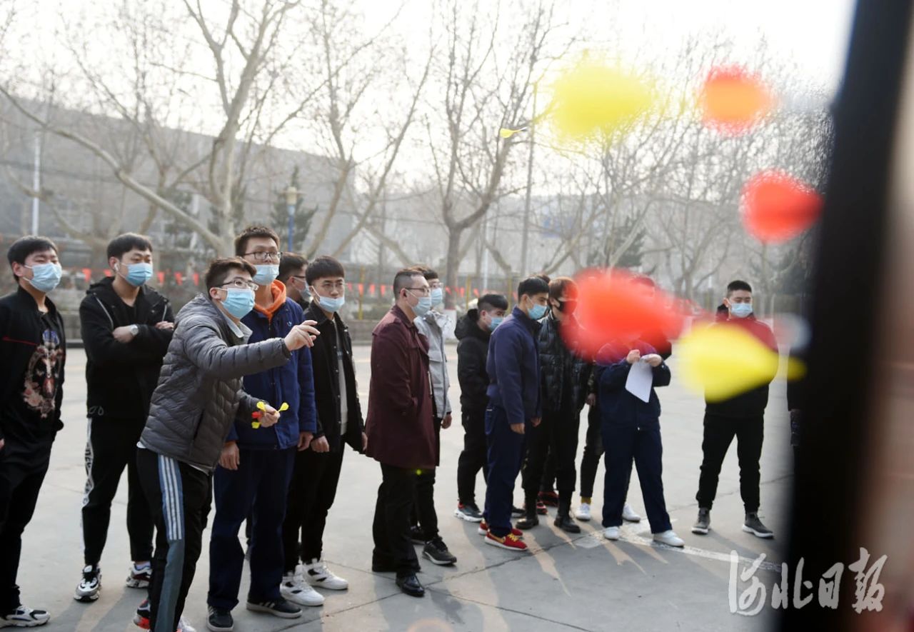 2021年2月12日,正月初一,河北省石家庄首页有限公司留石就地过年职工在参加飞镖比赛。河北日报记者 赵永辉摄
