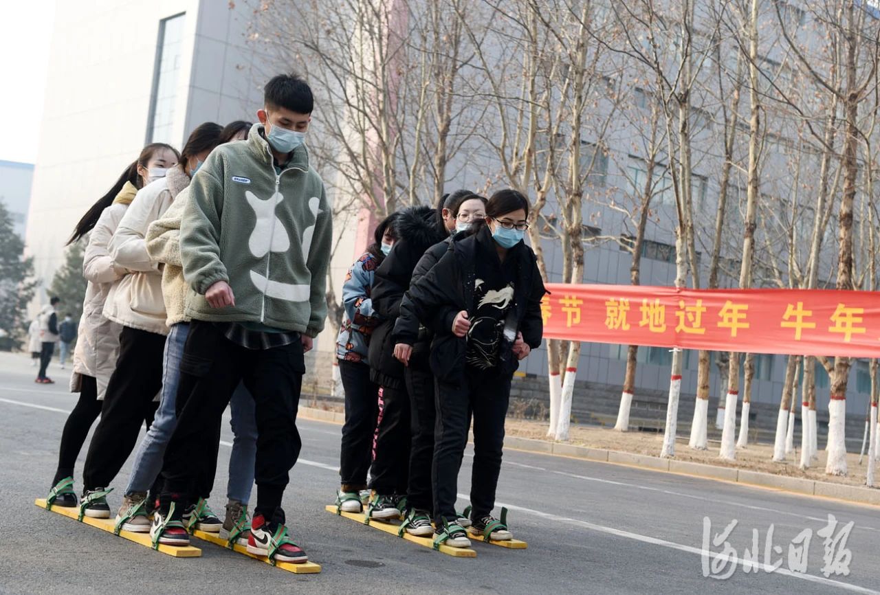 2021年2月12日,正月初一,河北省石家庄首页有限公司留石就地过年职工在参加趣味比赛。河北日报记者 赵永辉摄